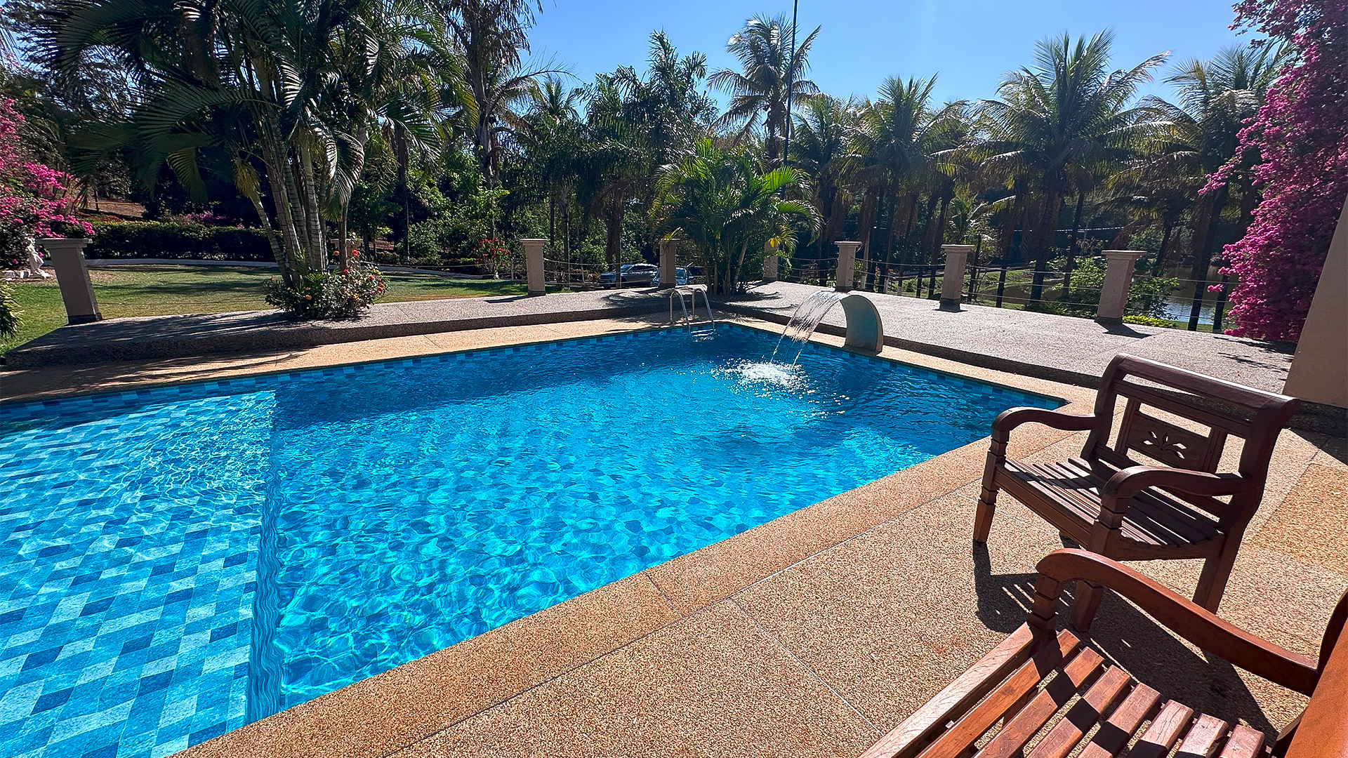 Em piscinas retas e em esquadro, prefira estampas maiores para melhor acabamento.