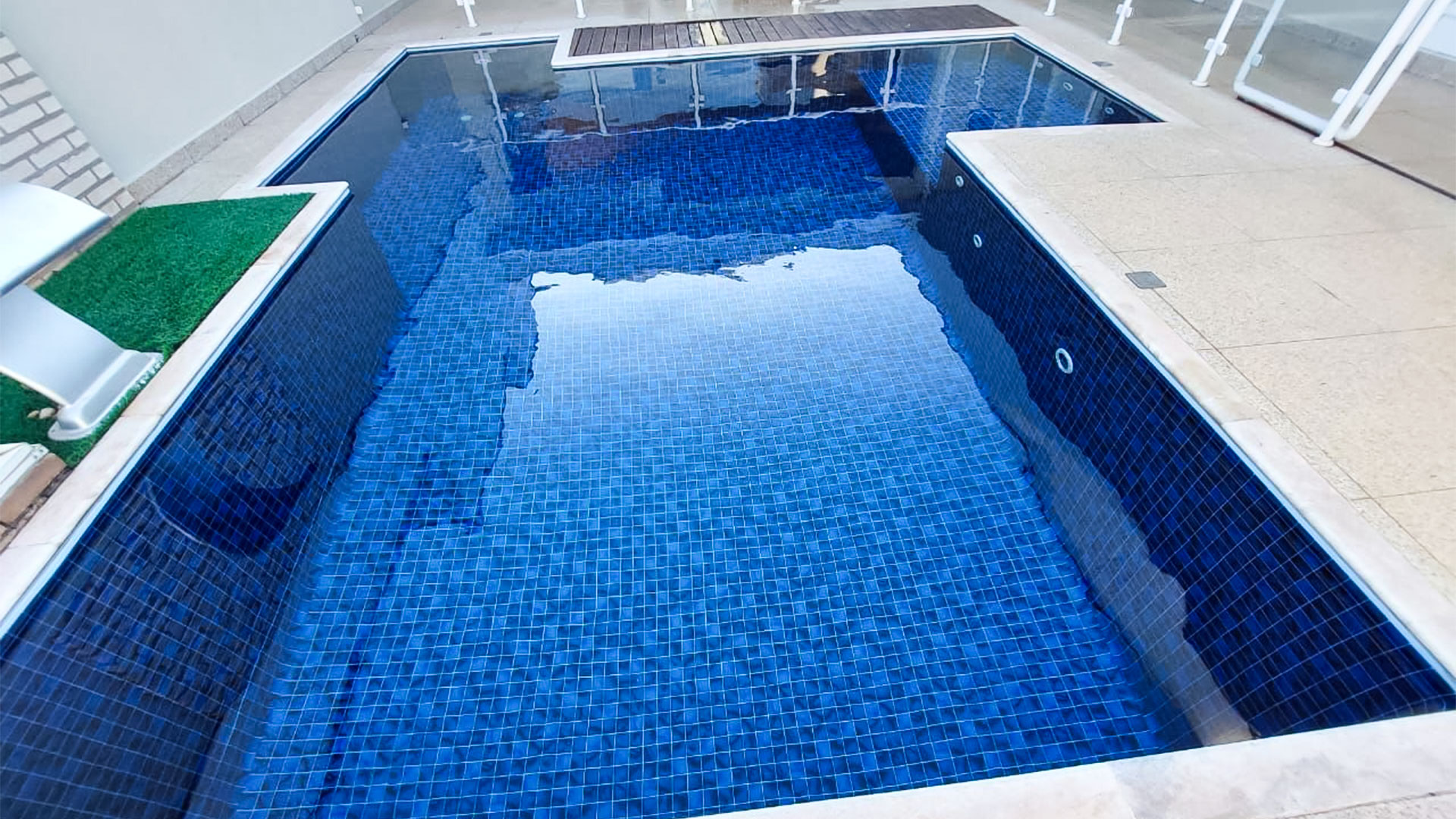 Em piscinas retas e em esquadro, prefira estampas maiores para melhor acabamento.